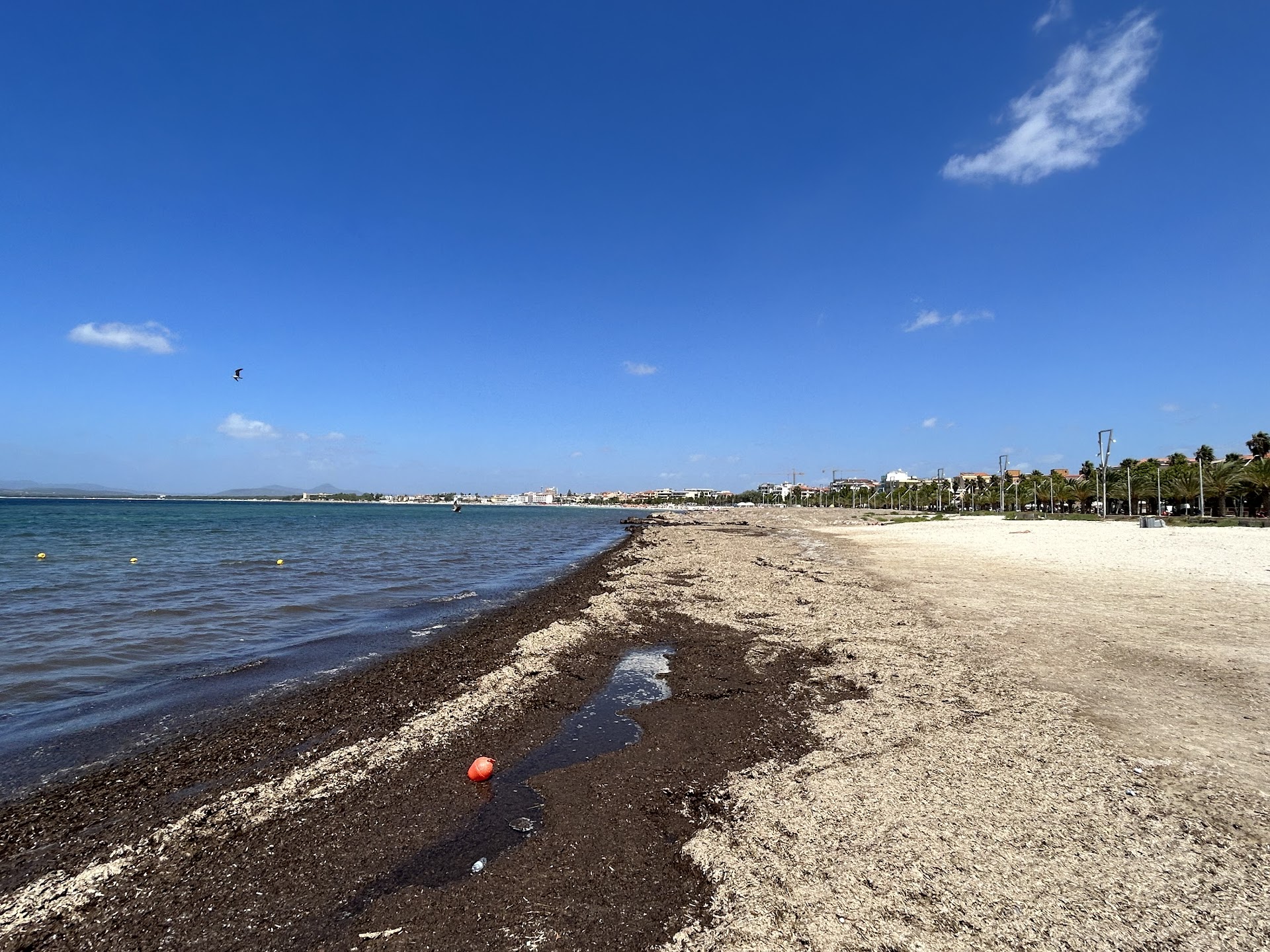 the beach has big potencial and could be wery popular if the city would care more about the beach (cleaning with tractor as in Lignano) and building some public showers and wc and next to entrence som wather for drink or foot wash... after the tourist dont need to think where to go and would stay more in Alghero...