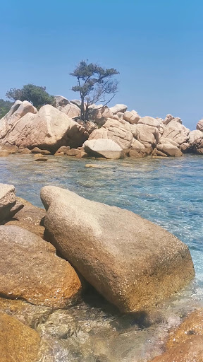 Read moreCar park was full when we arrived but we waited in a queue and as one car left another was let in (2.50€/hr). Short walk to the West beach which wasn’t large but big enough. Water was much calmer than the North beach. Beautiful warm, turquoise water with white sand. There also is shade available with nearby trees. We had the most fun jumping off the rocks which were within swimming distance...