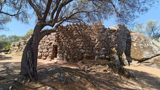 Read moreIl nuraghe, ubicato in territorio di Arzachena, è immerso in un bosco di ulivi e macchia mediterranea e si erge addossato ad un affioramento di roccia granitica che in parte ne sostituisce le strutture murarie. Il resto è composto di blocchi grandi e medi non rifiniti a scalpello e presenta una pianta irregolare che lo include nella categoria dei protonuraghe. L’ingresso si trova ad est ed è provvisto di architrave, visibilmente lavorato. A destra e sinistra troviamo due piccole nicchie e poco dopo sulla destra è presente una camera ellittica coperta a tholos tronca dove la sommità del vano si chiude bruscamente con un grande lastrone. Una scala di fondo porta al piano superiore dove è possibile scorgere il perimetro residuo di vari vani e ciò che rimane del pavimento realizzato con ciottoli di fiume. Da qui è possibile accedere ad un’ampia area semi-circolare senza copertura. Il sito è stato utilizzato nella tarda età del Bronzo (1300-900 a.C.) ma fu edificato in un periodo precedente. Venne poi abbandonato e rioccupato nell’VIII° - VII° sec. a.C con funzione sacra. All’interno della costruzione furono rinvenuti un pugnaletto ad elsa gammata, una statuetta in bronzo di un fedele in preghiera e sul terrazzo un’olla biansata con ciotola di copertura contenente frammenti di lingotti di tipo egeo in attesa di una nuova fusione, panelle e spade votive. I vari ritrovamenti hanno permesso di risalire alle varie attività che si svolgevano all’interno del nuraghe, come la lavorazione del latte, dei cereali, la cottura del pane e altri alimenti. Tutto intorno sono state rinvenute tracce di capanne di un villaggio, quasi completamente cancellato dalla depredazione delle pietrame in epoche successive.