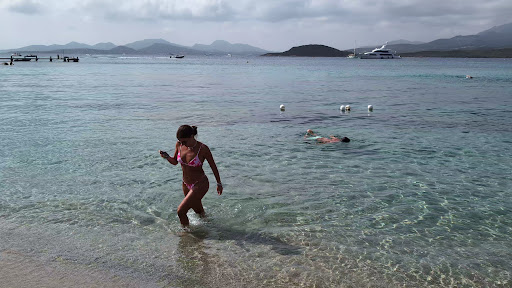 Read moreVery busy, beautiful pristine water. You can rent beach chairs and umbrellas. Parking is a daily fee, about 15euros. The sun sets on this beach so you can stay till very late. They rent pedal boats, kayaks and paddle boards also. There is a small restaurant located at the lower parking. There are fish to see while you swim. There are no corals so no variety but plenty of the same to see. Water is calm and protected from wind. We...