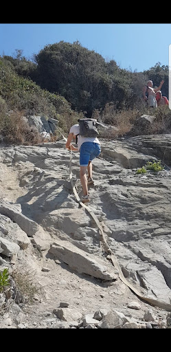 Read moreSpiaggia di Punta Bianca ..siamo ad Ameglia , provincia di La Spezia . Questa e una piccola spiaggia libera nascosta immezzo ad una bellissima insenatura tra le rocce da cui si può arrivare sia via mare oppure da un percorso molto ben segnalato al di sopra delle rocce tra viottoli e piccole discese , messe in piena protezione . Con ottime recinsioni in puro legno , ce da scarpinare un bel po" ma credetemi che alla fine ne varrà davvero la pena . Perche" il posto e davvero stupendo adatto ai camminatori . Arrivando giù gli occhi si perdono in una bellissima baia con acqua cristallina , per completare l'intero percorso ci vogliono 2 ore ..e una volta quasi arrivati in fondo ..il sentiero diventa difficoltoso e quindi bisogna calarsi giù con una corda aiutandosi a vicenda quindi e" meglio essere in grandi gruppi e ben preparati. E gli ultimi 150 mt ..sono fatti di massi taglienti che danno sul vuoto , e bisogna stare molto attenti, se volete passarli perché la discesa verso la spiaggia e" impervia e molto pericolosa. Ecco perché vi consiglio piuttosto di arrivarci via mare , per evitare spiacevoli conseguenze ..questo e" il consiglio che do a chiunque voglia avventurarsi da queste parti . Visto che conosco molto bene queste zone , un'ultima cosa se partite di mattina per arrivare qui più sereni ..la sera prima preparatevi dell'abbondante mangiare al sacco e molta acqua perché la giornata sarà lunga ..e portatevi l'ombrellone perché qui il sole e...