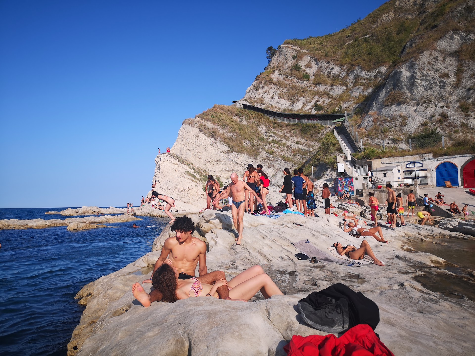 My favourite place in all ancona. During summer, come over with a pair of gloves and a net bag, qnd harvest some cozze from the rocks for a good dinner. This is a no service beach meaning there is no toilet and no lifeguard. The water is very deep and can be quite wavy. I much prefer this beach compared to passetto. The access involves a lot of steps, and you need to compete for the spot to lay your towel. No place to put parasol, though. There's a public shower near by the staircase if you need one, but don't use any soap/shampoo as the water goes...
