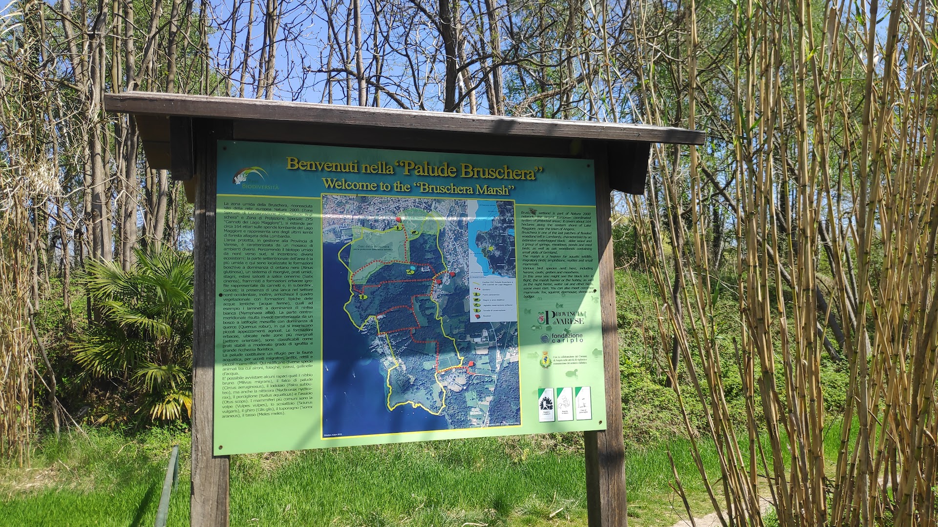 L'Oasi (o palude) della Bruschera ha vari accessi. Abbiamo parcheggiato nel parcheggio sterrato gratuito di Via Soldani, anche se molte auto erano parcheggiate lungo Via Sandro Pertini. Uno degli ingressi all'oasi è tra Via Pertini e Via Arena. Lungo il percorso, il sentiero si biforca in più punti. Date un'occhiata alla mappa all'ingresso, oppure lasciatevi ispirare dal percorso. All'interno dell'oasi potrete trovare uno stagno, un laghetto, una torretta di osservazione, l'impianto di depurazione delle acque e una bellissima spiaggetta in sassi, dove ristorarsi e ammirare il lungolago di Angera sovrastato dalla sua Rocca: una cartolina! Di fronte c'è Arona e, aguzzando un po' la vista, si può notare la chiesa e il Colosso di San Carlo Borromeo. Nei pressi degli accessi e lungo il percorso, ci sono sia cestini per i rifiuti che panchine per riposarsi qualche minuto. Faccio notare che alla torretta di osservazione mancano due gradini in legno, che rendono un po' pericoloso salire e scendere dalla torretta. Nel complesso, questa oasi è consigliata per rigenerarsi con una bellissima e sana passeggiata, immersi...