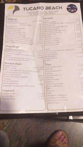 Il Tucano Beach offre grande spiaggia attrezzata di ombrelloni e lettini, servizi igienici, spogliatoi, docce, scivoli per bambini, tavola calda a prezzi modici ( 5 euro per un primo è decisamente poco ), con piatti espressi caldi e freddi. Ristorante con veranda fronte mare, pesce eccezionale, con piatti semplici e abbondanti solo ed esclusivamente con pesce freschissimo; pizzeria aperta di sera con impasto a lunga lievitazione e un lounge bar attiguo, aperto la sera che offre cocktail e serate organizzate con cantanti e intrattenitori. Sono 18 anni che frequento questo posto e l'ho visto nel tempo migliorarsi e crescere sempre di più. Una rarità a Tor San Lorenzo e UNA PERLA nel consorzio. Bravi!!!