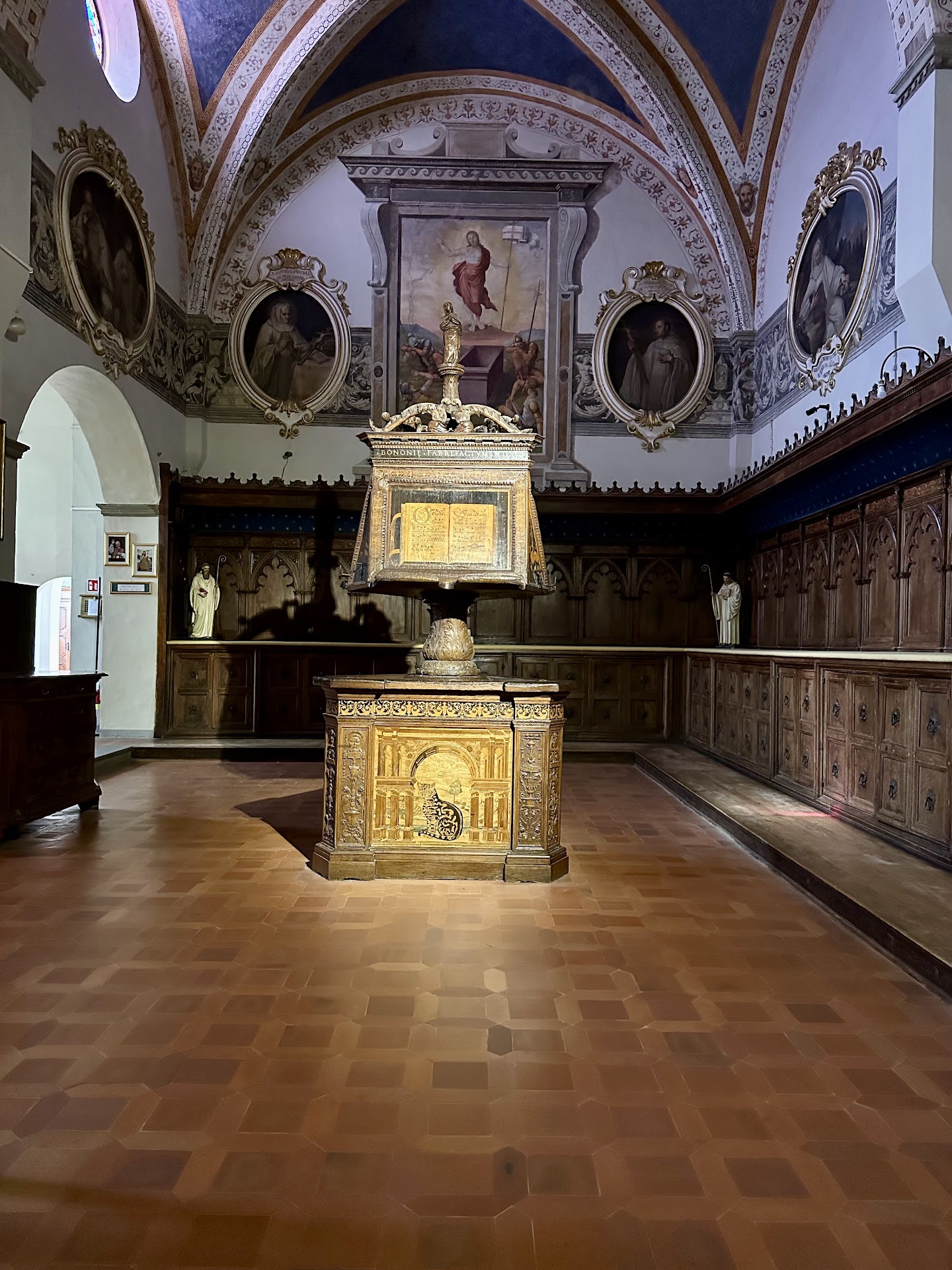 Ein absolutes Highlight des Klosters ist der Kreuzgang, der mit Fresken von Luca Signorelli und Sodoma geschmückt ist. Diese Werke erzählen in lebendigen und detailreichen Szenen das Leben des heiligen Benedikt und laden dazu ein, die biblischen und historischen Geschichten in aller Ruhe auf sich wirken zu lassen. Die künstlerische Qualität und der Erhaltungszustand der Fresken sind beeindruckend und machen Monte Oliveto Maggiore zu einem bedeutenden Ziel für Kunstliebhaber.