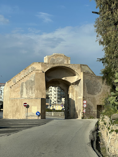 (Translated by Google) The door was commissioned by the Spanish viceroy Benavides, based on a project by Eng. Grunembergh. The expense was borne by the people of Augusta. The port was the access to the city from the port (to emphasize the strategic importance of the port of Augusta). Only the upper part (the griffins that support the Spanish crown of King Charles II of Spain) remained original, the rest has been modified...