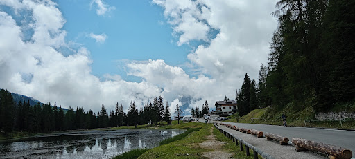 Arrivo al Lago d'Antorno e fermo la macchina in parcheggio. So che posso sostare per non più di due ore. Dietro a noi c'è il Rifugio Chalet d'Antorno. Colpisce la lunga balconata piena di fiori rossi. Vicino al lago una passerella in legno invita a camminarci sopra. Comincia così il sentiero che gira intorno al lago e che dura solo poche decine di minuti. Nel lago si specchia il cielo così come le 3 Cime di Lavaredo ed i Cadini di Misurina. Guardando a Sud... il gruppo del Sorapis che si sta liberando dalle nubi. A SudOvest, verso Cortina c'è il Monte Cristallino di Misurina che con i suoi 2700mt si erge sopra il lago. Da qualunque punto del sentiero si guardi il lago questo offre scorci panoramici con le montagne che lo circondano, gli abeti che crescono sulle sue rive, il colore dell'acqua ed i riflessi delle montagne intorno che cambiano a seconda di dove ci si trova. A rendere il lago ancora più bello e fiabesco sono stati intagliati alcuni ceppi di pino a mò di grossi funghi. Come si trovano solo nei racconti delle favole. La strada che arriva al Lago d'Antorno è la stessa che più avanti diventa a pagamento ed arriva al Rifugio Auronzo, punto di partenza x tante escursioni intorno alle 3 Cime. Dal lago, ci sono diversi sentieri che partono. C'è il sentiero per Malga Rinbianco e più su quello (il n°105A) per Val dell'Arghena fino alla Croda d.Arghena (2262 mt) attraverso la Forcella omonima. C'è il sentiero (n°115 )che sale al Rifugio Fonda Savio sui Cadini di Misurina. Inoltre il sentiero n.° 101 che dopo aver superato 450 mt di dislivello arriva anch'esso al...