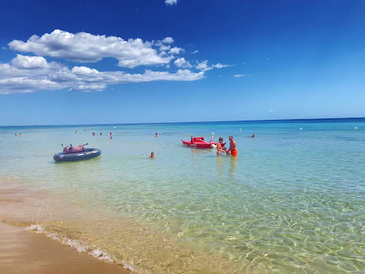 Read moreThere's a lot of space to park nearby (paid and free). You have a free and a paid part of the beach there. The stairs that lead down to the beach are in a bad condition. The beach itself is great, sandy. It's a small beach, surrounded by rocks, so close to the rocks there are also rocks in the water. Watch out with your toes. The water is very warm there compared to some other beaches we visited I the east coast and it's shallow for a long time. It's great for some relaxing...