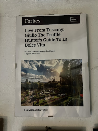 Giulio! What a beautiful person full of life and passion. My wife and i are on our honey moon enjoying a trip around Italy… we are truffle lovers and personally I am obsessed with truffles, living in NY we dont get to experience it like Italians do, the truffle capital of the world! I said to myself I must experience the best of the best when it comes to truffles, after doing lots of research we found Giulio the truffle hunter. Just the name makes him sound like to god of truffles which he certainly is! As we drive the beautiful roads of Tuscany it leads us to a very authentic little house on top of a mountain over looking the beautiful Florence, we are greeted by Giulio which leads us into his home sitting us down around his dining table and giving us a very detailed and knowledgeable insight of truffles through one of his amazing paintings… after about an hour of getting real insight of what truffles are and how special they are… we took a 1min ride to the hills where we get out of the car with his 2 hunter Dogs, Scott and Magga. Magga is the pro of 4 years, Scott is a 1 yr old puppy still in training. With in a few mins roaming the woods, Magga finds a small truffle for us! Giulio knew how obsessed and my love for truffle is, he made an exception which he said he Almost never does and handed me Magga the pro hunter, we hunted for a little bit and I spotted her reactions which after watching Giulio find the previous one with Magga I knew she found something, we found a huge huge black summer truffle!!! Which took me to 7th heaven! Giulio couldn’t believe it since he never lets anyone take Magga or didn’t expect an amateur like me knowing where and how to hunt a truffle… he also let my wife hunt with Scott, Scott only found 2 truffles with in over a year since he is still in training . After walking with my wife for a few mins she and Scott found another truffle!! Unbelievable! After our hunt in the woods we went back to his house where he cooked us up the best homemade pasta with freshly shaved truffle on it. A bunch of it. Poured us some wine and we sang the afternoon away with his truffle songs… A real dream come true! Authentic moments that will be remembered forever! Until next time thank you for the amazing experience Giulio, Magga and...