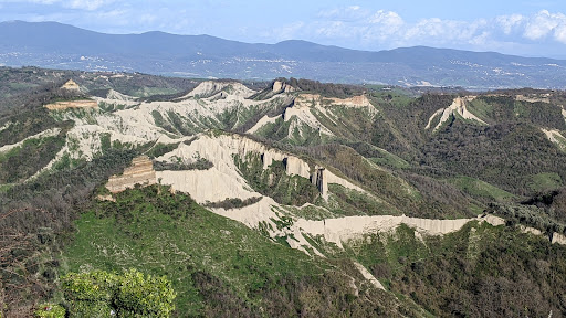 Read moreChe vista... Dopo una estenuante camminata tra salite e discese, dopo aver parcheggiato a più di 6 chilometri dal centro di Bagnoregio, siamo finalmente arrivati alla meta. Una vista fantastica tra le antiche mura di questa città incrollabile nel abbiamo visto è trovato la motivazione per la quale centinaia di persone assalgono questa meta. Abbiamo capito che non importa quanto sia dura la salita quanto resina da camminare e soprattutto quanto possa essere ripida la strada da percorrere quando arrivi nell'antico borgo e trovi una vista del genere su tutto ciò che ci circonda si riesce sicuramente a dire che ne è valsa la pena. È difficile dire quanto si è bello qui la pace e la sensazione di completezza che si hanno guardando l'immenso paesaggio immerso nelle colline costellate dal verde che dire... Sicuramente quando inventeranno le protesi ad alta tecnologia delle gambe e la spina dorsale sicuramente torneremo a farci una bella passeggiata. Ed è quasi arrivati qui al giardino del poeta dove oltre ad avere una vista mozzafiato hanno anche un negozietto con tantissime sfiziose di produzione propria e non consigliatissime le confetture senza nulla togliere al miele 🍯...che...