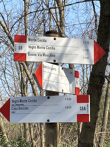Read moreBel percorso in mezzo alla natura situato a Baone nella parte più meridionale dei Colli Euganei. È un sentiero ad anello, con viste mozzafiato e nei periodi giusti con molte fioriture. Ci sono indicazioni del Cai a guidarvi su dove andare, quindi tranquilli non vi perderete nemmeno se non avete un GPS come noi. Non potete assolutamente sbagliarvi. ⚠️ ATTENZIONE⚠️ però a seguire bene le indicazioni e alle biciclette! Eh si perché è un sentiero di facile percorrenza ma anche molto trafficato dagli amanti delle moutanin bike. Devo dire però che, noi con 2 cani sempre liberi, quando i ciclisti ci vedevano ci avvisavano sempre del loro passaggio...sono stati sempre gentili e anzi salutavano sempre con cordialità. Quindi mi sento di consigliare questo percorso anche a quelle persone che come noi hanno cani e/o bambini almeno dai...