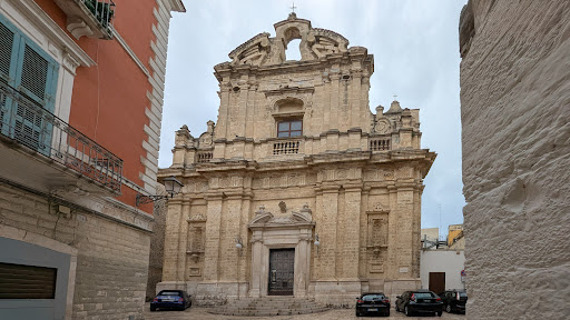 Plus haut, une fenêtre à balustrade et un fronton brisé aux volutes dynamiques traduisent toute l’expressivité du style baroque. Le dôme hémisphérique coiffé d’un lanternon et le clocher voisin complètent la silhouette de l’ensemble conventuel. Enchâssée dans le dédale des ruelles de Bari Vecchia, l’église ouvre sur une petite placette paisible. Désacralisée depuis 1975, elle a été restaurée et accueille aujourd’hui des concerts, expositions et la Bibart Biennale, devenant ainsi un lieu de culture autant...