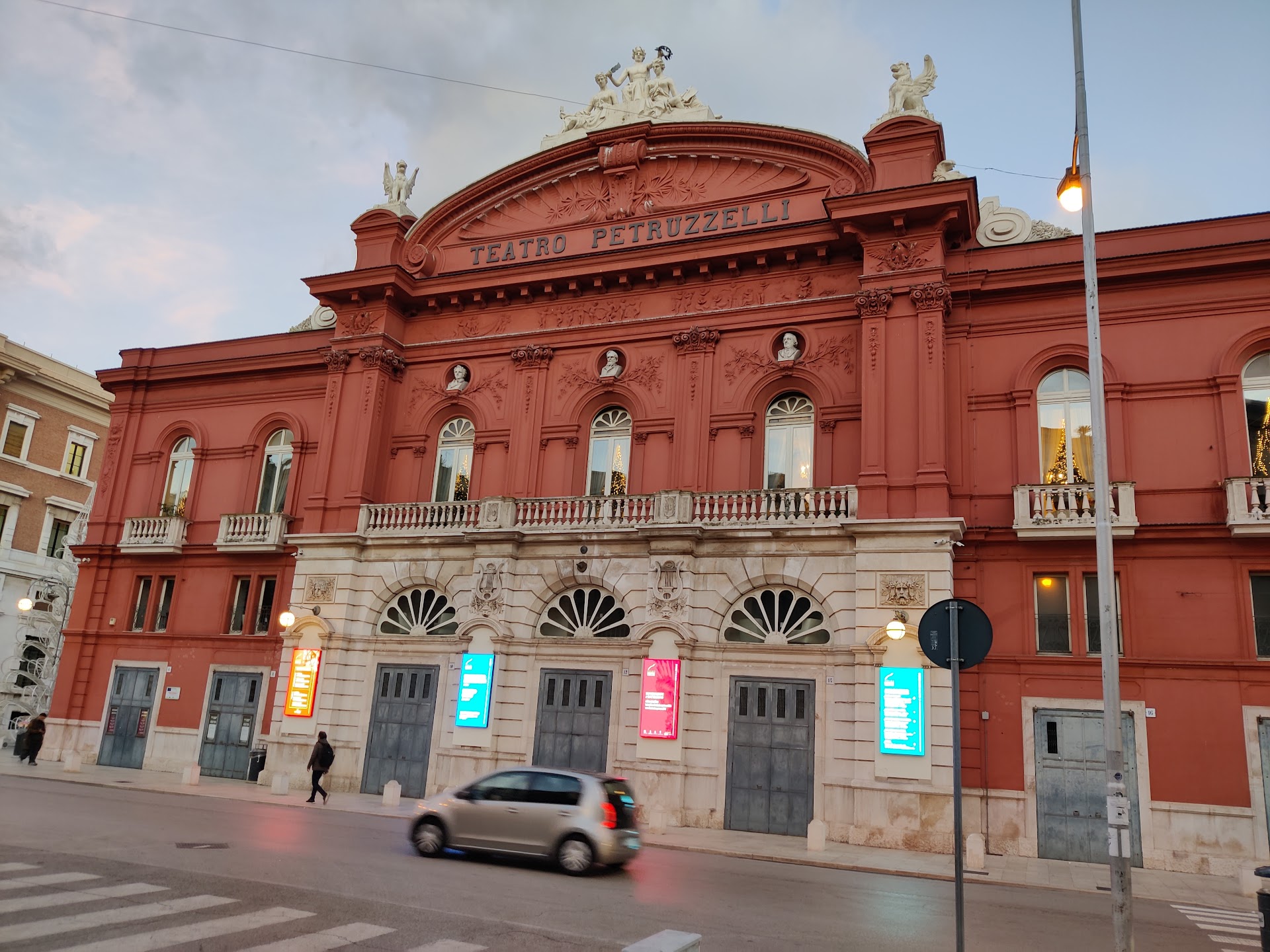 Costruito tra il 1898 e il 1903 su progetto degli ingegneri Angelo e Onofrio Petruzzelli, da cui prende il nome, il teatro fu originariamente voluto come spazio privato dalla famiglia omonima, ma divenne presto un punto di riferimento per tutta la città. La facciata, in stile neoclassico, è un autentico capolavoro, impreziosita da fregi, decorazioni elaborate e statue che simboleggiano le arti 🎨🎶.