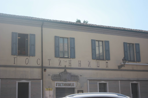 Das größere Gebäude fand im „Genosse Don Camillo“ auch Erwähnung, ist es doch das Gebäude, in dem die italienische Delegation in Russland untergebracht war. Daher auch die russische Schrift außen.