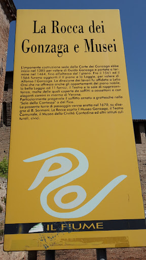 Dentro una splendida stanza romana bizantina, poi sale con gli affreschi aalvato di una caccia cinquecentesca poi demolita e quadri importanti per l'area con la visualizzazione delle connessioni tra le varie famiglie rinascimentali dai gonzaga agli estensi e anche ai visconti.