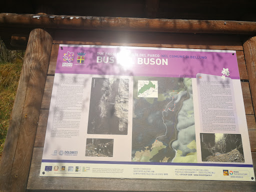 Gola del Pont de la Mortis è una spettacolare forma di erosione fluviale, con uno scenario da girone infernale dantesco. Il ponticello è sospeso sopra la stretta gola che vede quasi congiunte le pendici del Serva e quelle del Terne. La gola, resa suggestiva dal contrasto tra le rocce rosse e le acque cristalline, rappresenta un "varco" che il Torrente Ardo si è dovuto aprire in seguito ad una grande frana. Parliamo di un canyon naturale, formatosi circa 15.000 anni fa, ad opera di un antico torrente subglaciale che, con la sua forza dirompente, scavò una forra stretta e profonda. A causa di una frana il torrente fu costretto a trovare un’altra strada, lasciando vuota la sua vecchia casa. Ovvero, il canyon del Bus del Buson. Le pareti della gola, che in alcuni punti sono talmente ravvicinate da sembrare quasi attaccate, sono composte da una roccia particolare chiamata Biancone. Una roccia calcarea, formatasi durante il periodo Cretaceo, quando cioè la zona del bellunese era ricoperta da mare profondo. I fanghi carbonatici che si depositavano sui fondali diedero origine proprio al Biancone. Il Biancone ha una forma ondulata, sinuosa, che rende la gola ancor più particolare. Gli strati di roccia si vedono ad occhio nudo. Il fiume Ardo oggi scorre a circa 150 metri dal canyon. Il Bus del Buson, oltre ad essere un luogo naturalistico di grande interesse, ospita di tanto in tanto concerti ed altri eventi artistici. Per questo viene anche chiamato come “Auditorium di Pietra”. Bus del Buson: l’area archeologica Il Bus del Buson è anche un’area archeologica di grande importanza per la Provincia di Belluno. Alla fine degli anni Novanta qui sono stati rinvenuti strumenti in selce, circa 300 punte di frecce (il più numeroso ritrovamento italiano, per ora), asce in rame. Tutti oggetti risalenti all’incirca 5000 anni fa, che testimoniano l’antica presenza di pastori ed agricoltori. Dove si trova il Bus del Buson e come raggiungerlo Per raggiungere a piedi il Bus del Buson occorre raggiungere la località Case Bortot, a circa 7 chilometri dalla città di Belluno. Poco dopo la locanda che prende il nome della località, troverai un ampio parcheggio. Da qui parte la nostra escursione a piedi. Dal parcheggio sopracitato si imbocca un’ampia strada sterrata. Dopo un primo tratto in leggera salita ci si imbatte in un bivio, con un piccolo sentiero che si inoltra nel bosco verso destra. Imboccandolo, si affronta un percorso stretto, completamente immerso nella folta vegetazione. È un continuo sali-scendi, con alcuni tratti abbastanza ripidi. Dopo circa 20-30 minuti di cammino si arriva al canyon. La forra del Bus del Buson è attraversabile a piedi ed è lunga circa 250 metri. Fermati il tempo necessario per ammirare la roccia sinuosa e gli infiniti strati che la caratterizzano. Il primo tratto è molto stretto, ma ti ritroverai presto in un ampio teatro dove riuscirai ad ammirare a 360° le altissime pareti di roccia che formano la forra. Non so te, ma quando io mi ritrovo davanti a tanta bellezza non posso fare a meno di pensare a quanto Madre Natura sia stata generosa! Una volta usciti dal canyon, si prosegue per il sentiero (è un percorso ad anello), che con una leggera salita ti riporterà sulla stessa mulattiera da cui abbiamo cominciato la nostra escursione. L’intero percorso ad anello che conduce al Bus del Buson è lungo circa due chilometri, da percorrere in un’oretta circa. L’escursione non presenta difficoltà particolari ma è importante non abbandonare mai il sentiero segnato, specie se vi sono bambini. Vi sono alcuni strapiombi nei dintorni che potrebbero rivelarsi molto pericolosi. Consiglio caldamente scarpe da trekking con una buona aderenza. Il suolo boscoso è molto spesso umido...