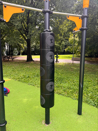 Trovi una Super ragnatela per far arrampicare i bambini, altre attrezzature da palestra e poi il parco giochi per i piccoli 🤩🤩❤️ super attrezzato. Questo parco ha diversi ingressi cioè si può entrare da molte vie e permette di raggiungere i diversi punti...