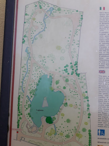 Davvero un bel parco! Ricco d'ombra, di verde e pervaso da un'atmosfera speciale. Passeggiando al suo interno si incontrano una torre neogotica, alberi secolari fra i quali scorrono ruscelli e soprattutto, in posizione centrale, un ampio laghetto artificiale con grotta realizzata secondo il gusto tipico del Cinque-Seicento, epoca dei ninfei e delle nicchie "marine". In effetti è nato in quel periodo come giardino dell’omonima residenza, Palazzo Marenzi, il cui ingresso si trova su via Pignolo. Nel 1973 è diventato poi proprietà del Comune di Bergamo; da allora delizia adulti e bambini con il suo boschetto, l’acqua zampillante e le molte essenze, fra le quali anche alberi di specie esotiche. Il suo maestoso cedro fa parte dell’elenco degli alberi monumentali di Bergamo ed è stato recentemente messo in sicurezza con funi da nave.