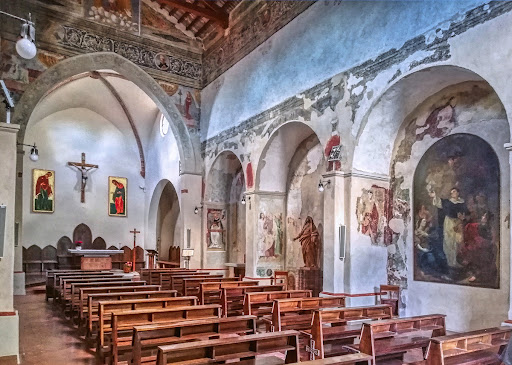 La chiesa annessa all’eremo è dedicata a S. Vincenzo ed è accessibile dall’esterno del complesso. La chiesa è stata oggetto di un significativo intervento di recupero negli anni ‘60. La facciata è in stile romanico-gotico decisamente essenziale. L’interno si sviluppa ad unica navata con una serie di cappelle a botte sui lati con molti pregevoli affreschi solo in parte visibili perché molti sono andati perduti durante l'occupazione napoleonica. Solo la prima cappella di sinistra è quasi completa. Semplice l’altare maggiore in pietra circondato da un semplice e piccolo coro ligneo. La volta del presbiterio si sviluppa con coste a sesto acuto, mentre il resto della chiesa ha un...