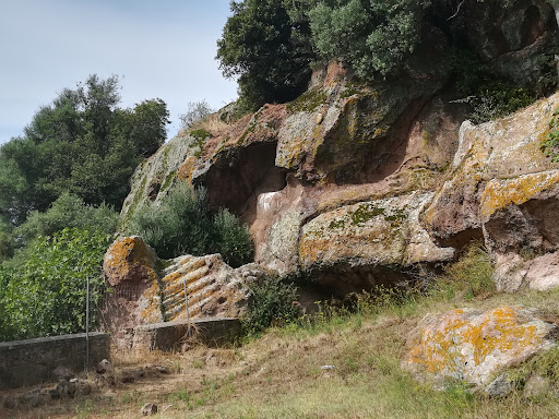 Read moreLe domus de janas che compongono questa necropoli, una delle più estese ed importanti della Sardegna, sono scavate sulla parete verticale e sul pianoro di un affioramento trachitico - alto circa 10 m e orientato a S - e consisono in una ventina di sepolture disposte per lo più ad una certa altezza rispetto al livello di campagna. Cronologicamente sono inquadrabili nel neo-eneolitico, fra IV e III millennio a.C., ma le prime fasi di utilizzo sono da ricondurre alla Cultura di Ozieri (Neolitico finale: 3200-2800 a.C.). Gli ipogei risultano accessibili solo in parte, in quanto il cedimento parziale del fronte di roccia ha causato la distruzione di alcuni vani e dei gradini o pedarole che consentivano di raggiungerli. L'impianto planimetrico delle sepolture è monocellulare o pluricellulare: a quest'ultimo tipo appartengono tre tombe di particolare interesse: la "Tomba del Capo", la "Tomba a capanna circolare" e la "Tomba a camera". La prima, di maggiori dimensioni comprende 18 ambienti disposti, in modo labirintico, attorno a due vani principali. Un atrio rettangolare introduce nell'anticella semicircolare (diam. m 7,10) il cui soffitto riproduce i travetti radiali di un tetto semiconico. Sulla parete di fondo si apre il portello d'ingresso alla cella principale (alt. m 1,80) sormontato da un falso architrave rettangolare a rilievo marcato. Le due celle retrostanti, rettangolari (m 6,80 x 4,10; m 8 x 8,60), sono disposte in successione l'una dopo l'altra sullo stesso asse. Gli ambienti presentano due colonne rastremate verso l'alto, mentre sulla parete sinistra della seconda cella si conserva la riproduzione di una falsa porta. Sulle pareti dei due ambienti maggiori si aprono i portelli d'ingresso di numerose celle secondarie caratterizzate dalla presenza di nicchie e banconi. La "Tomba a capanna", vicina alla precedente, conserva un primo vano a pianta rettangolare (m 1,75 x 0,80) – caratterizzato dalla presenza sul pavimento di tre fossette per offerte – che immette nella cella principale circolare (diam. m 3; alt. m 2,30). Questo secondo ambiente presenta sul pavimento 15 fossette per offerte, alcune delle quali tagliate da una tomba a fossa successiva, e altre due piccole nicchie scavate sulla parete antistante l'ingresso. Il soffitto, a cono, conserva la riproduzione di un tetto con travetti radiali. Sulle pareti laterali sono presenti i portelli di accesso a due vani aggiunti in un momento successivo al primo impianto della sepoltura. La "Tomba a camera" - il cui originario ingresso monumentale con scalinata (largh. m 2) è crollato a causa del cedimento del fronte roccioso - riproduce gli elementi architettonici di un'abitazione a pianta rettangolare. Un padiglione d'ingresso (m 2,85 x 2,75) conserva nel pavimento tre fossette e introduce nell'ambiente maggiore, rettangolare in pianta (m 4,50 x 3,06 x m 2). Questo secondo vano presenta due pilastri e un soffitto che riproduce un tetto a doppio spiovente, con trave centrale e travetti laterali. Sulle pareti laterali del vano sono risparmiati alcuni cubicoli disposti a coppia. Alcune altre sepolture della necropoli mostrano elementi architettonici o simbolici: sul pavimento di una delle tombe minori scavate sul pianoro dell'affioramento, ad esempio, è realizzato un focolare con anello circolare in rilievo e con fossetta centrale. La necropoli venne riutilizzata per un lungo arco di tempo. In età medievale la "Tomba del Capo" venne trasformata in luogo di culto. Sulle pareti delle due camere più interne furono realizzati affreschi di soggetto cristiano....