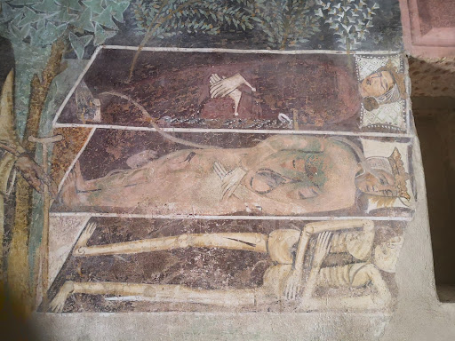 Read moreSpettacolare ciclo di affreschi di mano ignota che, da solo, vale l'arrampicata fino al castello che custodisce la chiesa in cui si trova! Si tratta di un unicum in Sardegna e per la sua bellezza merita di essere visitato! Particolare è infatti la rappresentazione della leggenda dei tre vivi e dei tre morti, presente anche nel camposanto di Pisa, con cui si sono ipotizzati collegamenti da un punto di vista stilistico, anche se gli affreschi di Bosa sono posteriori. Ad oggi non si sa quasi nulla di questo misterioso ciclo, del quale manca anche un filo conduttore tra le diverse scene: l'ultima cena, sfilate di Sante, leggenda dei tre vivi e dei tre morti, San Giorgio che uccide il drago, san Martino che dona il mantello, San Lorenzo sulla graticola solo per citarne alcune. Sulla controfacciata restano ancora due gigantesche gambe di San Cristoforo che rendono l'idea di quanto il ciclo originale si...
