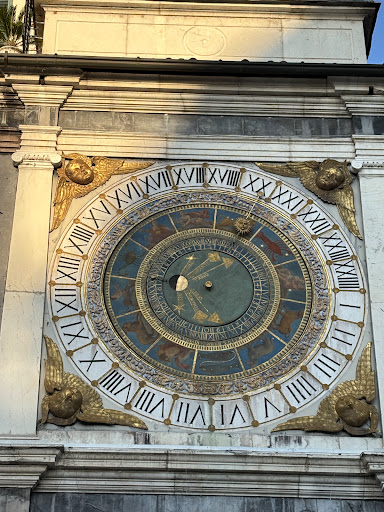 🕰️ Torre dell’Orologio – podstawowe informacje • Lokalizacja: Wschodnia strona Piazza della Loggia • Zbudowana: w mid-XVI wieku (ok. 1540 r.) • Architekt: prawdopodobnie Lodovico Beretta • Zegar: mechaniczny, astronomiczny • Figura na szczycie: Dwa „Maury” – zwane lokalnie “i Màcc de le ure” (czyli „szaleńcy z godzin”) – uderzają młotkami w dzwon