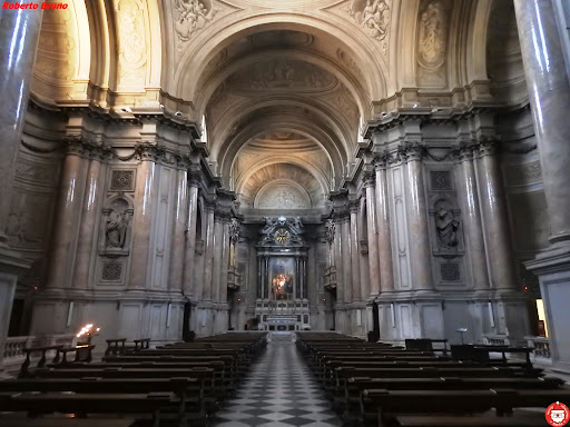 Beautiful monochrome frescoes adorn the vaults of this austere church along with a handful of impressive 18th-century altarpieces.