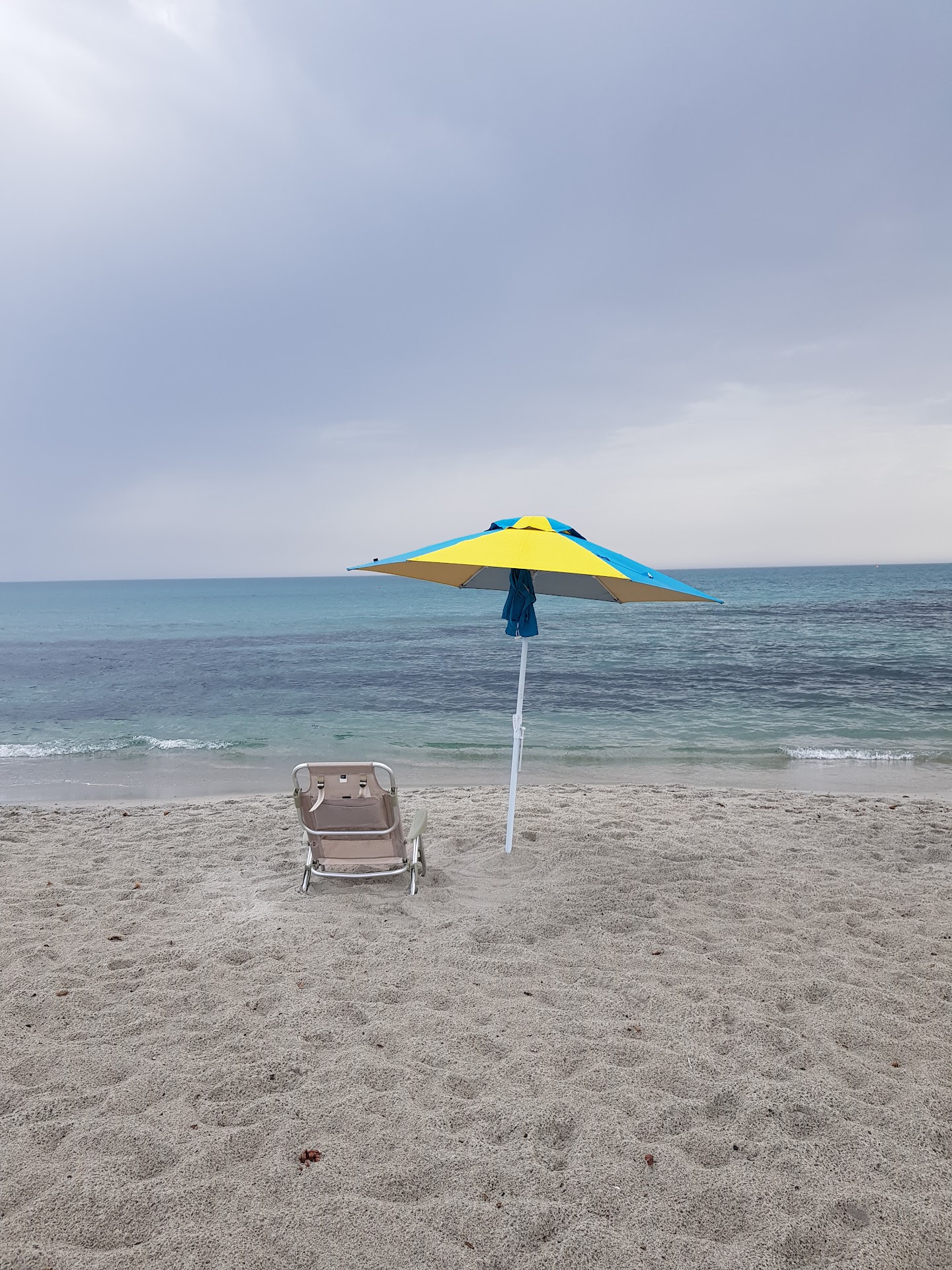 Beautiful beach. The setting is best, with mountains and the pine grove next door. Lots of services, including a pizzeria. Easy parking until it runs out by about 10AM in August. The sand shelves slowly so it's a good beach for the old and young kids. The water is a bit murky for the water plant debris, which is natural, so it's not the best for snorkeling. But by the southern pine grove there are nice rocky canyons to have fun in...