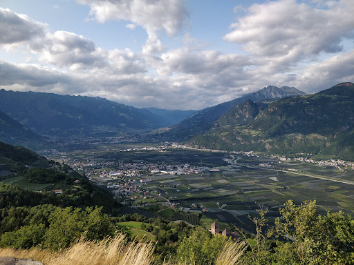 Starting from the South direction clockwise the place provides clear naked eye view of: Sigmundskrone castle, Gantkofel mountain (with its remarkable peak shape), Zwindenburg castle, Leonburg castle, Eschenloher castle, Tirol and Brunnenburg castles, city of Meran, Katzenstein castle, Aschlbach waterfall, Kroell tower, Neuhaus Maultasch castle ruins and the city of Bozen!