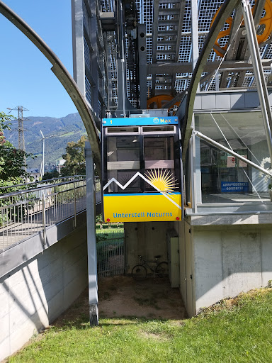 Abbiamo usufruito di questo impianto di risalita, sito a Naturno nei pressi di Merano, perchè compreso nella Summer Card che abbiamo acquistato in albergo alla non modica cifra di 75 euro (30 a persona x gli adulti e 15 x nostra figlia). La card dà diritto a prendere i bus x 1 settimana, ad entrare al museo Archeoparc e a fare 1 viaggio, cioè andata e ritorno, su 3 impianti di risalita: Glacier, che conduce al ghiacciaio della Val Senales( dove c'è l'albergo più "alto" d'Europa e dove fu ritrovata la mummia dell'uomo primitivo ribattezzato Otzi nel settembre 1991), Lazaun (conduce ad un bellissimo altopiano da dove riscendere con i mountain cart) e appunto Unterstell. La vista sulla vallata di Naturno da Unterstell è molto bella: ci sono chalet dove mangiare e bere, subito appena si arriva un bel parco x bambini, molti sentieri alcuni ferrati, e c'è la possibilità di salire fino ad una terrazza panoramica. Ma, ed ecco la fregatura in agguato, noi siamo stati sfortunati col tempo: stavamo iniziando a ridiscendere a piedi quando ha iniziato a piovere e con forti raffiche di vento. Decidiamo di riscendere in funivia, quando il tizio ci dice che i biglietti non sono più validi e dobbiamo ripagarli! Assurdo: una vera fregatura! Che lo scrivano allora sulla Summer Card: non è giusto "spennare" i turisti così!
