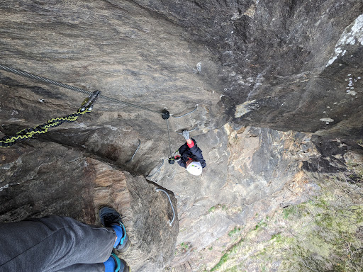 Read moreSuper schöner Klettersteig! Ich bin Teil 1 und Teil 2 normal und dann die Variante im dritten Teil weil dort kein F vorkommt. Ohne meine Rastschlinge hätte ich es nicht geschafft! Langer Überhang und Karabinerwechsel... Oben dann kleiner Wasserfall mit "Schwimmbecken". Bitte nicht an die Kante gehen um runter zu schauen, sehr glitschig, nichts zum festhalten und es geht steil runter !!!!!