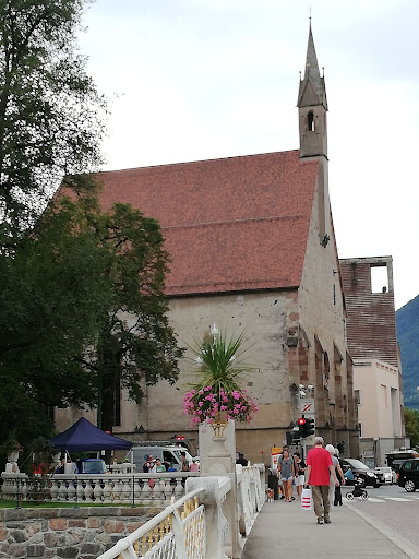 Read moreIn stile gotico con tre navate di eguale altezza e nove colonne molto slanciate. Ricostruita nel corso del 400 dopo essere stata distrutta da una piena del fiume Passirio che scorre proprio davanti a lei. Al suo fianco, sulla parte meridionale, si trovava l'edificio dell'ospedale che venne poi demolito nel 1938. Sette vetrate l'illuminano ma non sono opera antica difatti sono opera di artigiani locali e datano inizio del 1900. Raffigurano i doni dello Spirito Santo. All'interno molte opere abilmente scolpite e molti dipinti di grande valore. L'altare in pietra, a differenza delle altre chiese, non è staccato dell'assemblea ma evidenziato come centro dell'assemblea; secondo quello che il nuovo ordinamento liturgico stabilisce ma, naturalmente, voluto secoli...
