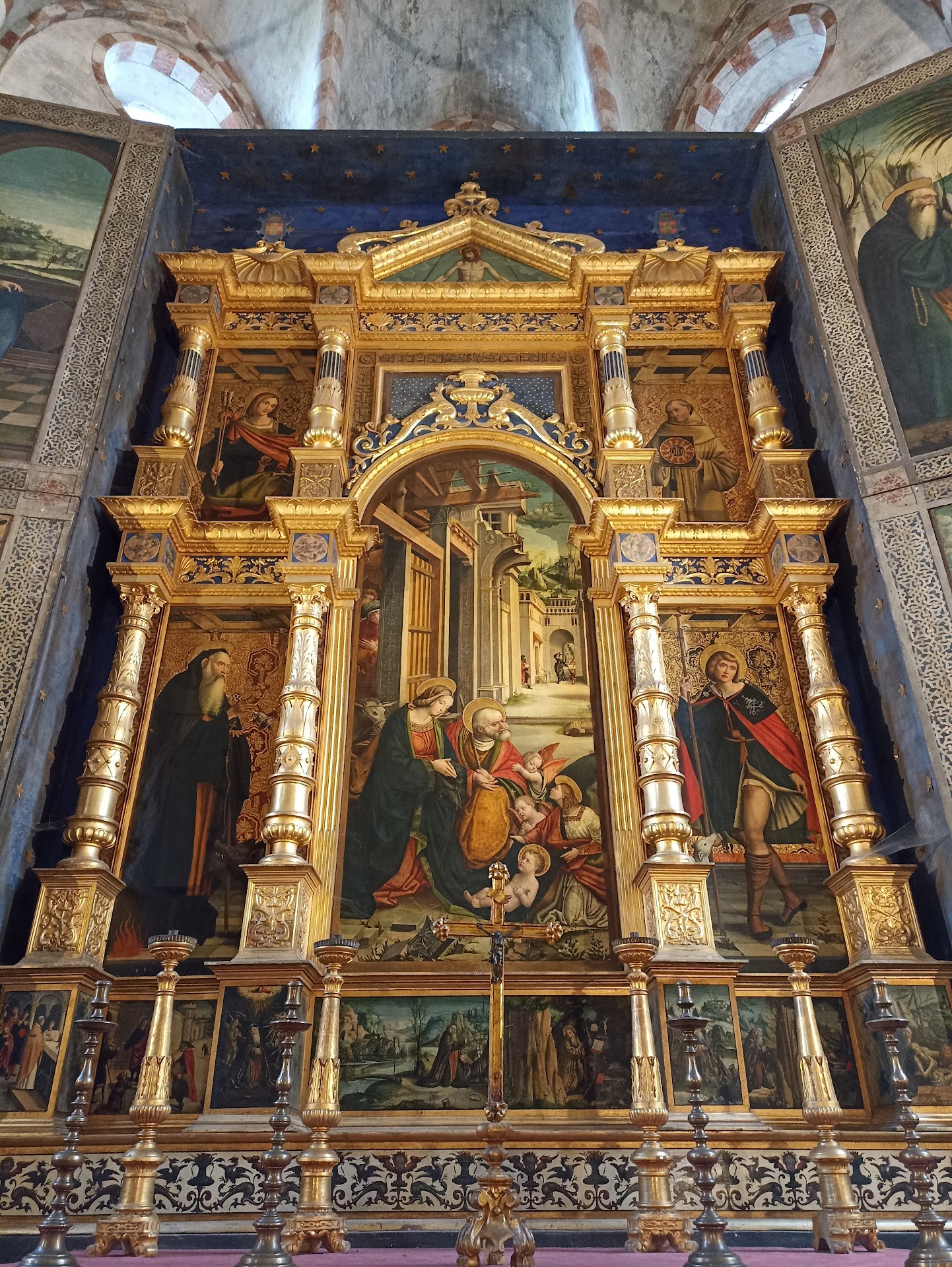 Read moreÈ un complesso monastico eccezionale, purtroppo poco conosciuto. Ciò che lo rende unico è la stratificazione artistica ed architettonica che si è creata nel tempo. Fondato nel 1188 su impulso di Umberto III di Savoia, che donò i terreni ai Canonici regolari di Sant'Antonio di Vienne, il complesso mutò aspetto durante i secoli; al primigenio romanico si sovrappose sempre più il nascente gotico, che trovò la sua espressione definitiva con il commendatario Jean de Monthenou, che alla fine del Quattrocento realizzò gli interventi più scenografici: le ghimberghe in stile francese che incorniciano i tre portali del pronao della chiesa sono fra le più belle d'Italia. Ma anche la decorazione pittorica dell'interno, ad opera di Giacomo Jaquerio (1375 circa - 1453) per gli affreschi e di Defendente Ferrari (1480/1485 - 1540) per il polittico dell'altare, rappresenta rispettivamente una delle maggiori testimonianze dell'arte tardogotica e rinascimentale in Piemonte.