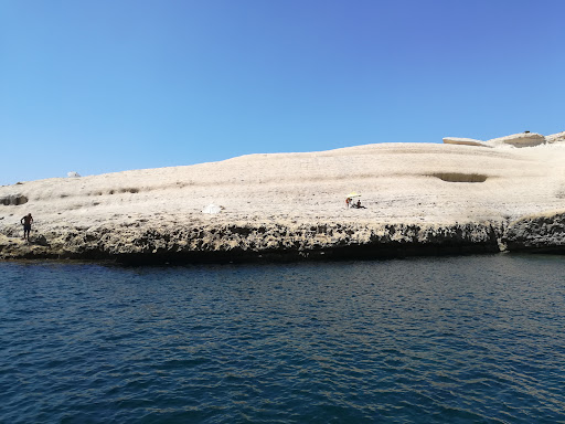 Il mare presenta diversi colori dovuti alle rocce che rappresentano quasi la totalità del fondale. Questo ha una profondità minima di circa 3mt (non è la classica spiaggia dove si entra camminando. O ci si tuffa dalle rocce o si entra da una piccola piattaforma di roccia al livello del mare).