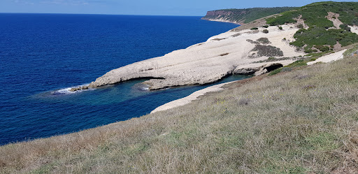 Read moreSulla SS292 direzione Nord, appena superato l’abitato di S. Caterina di Pittinuri, si apre una traversa sulla sinistra: Via su Paris de sa Turre; in fondo, dopo le scuole elementari, diventa Via Levante e c’è la possibilità di parcheggiare in un ampio piazzale assolato affacciato sul mare. Sulla destra si apre un sentiero in mezzo alla macchia di lentischi piegati dal vento che diventano via via più radi fino a scoprire una bianca roccia calcarea mammelliforme, che ha più l’aspetto di una stesa di pasta da pizza schiacciata con le dita, e che degrada inclinata verso il mare. Si apre per prima la caletta “sa Culumbera” e proseguendo si raggiunge la caletta “su Riu de sa Ide” con un percorso un poco più difficile per l’inclinazione del pendio, per l’irregolarità del terreno e la mancanza di appigli. Ma già si può ammirare tutta la bellezza del posto di un bianco accecante in contrasto col mare blu intenso che si infila nella caletta fin sotto una profonda grotta sotto il promontorio. Come magnifico è il contrasto tra il bianco della roccia e la macchia verde brillante di cisti e lentischi che prosegue lungo un sentiero parallelo alla costa. Questa caletta è diventata inoltre. famosa per essere stata il set di alcune scene del film di Paolo Zucca “L’uomo che si comprò la luna” grazie proprio all’aspetto lunare, bianco ed irregolare della roccia. Non c’è possibilità di ombra, né di piantare ombrelloni (che a mio parere sarebbero una vera e propria offesa al paesaggio! – ndr), quindi arrivate preparati e muniti di berretti e magliette protettive, oppure già ben abbronzati! Per quanto il percorso sia abbastanza breve, per le caratteristiche della superficie della roccia lascia ed umida, è sconsigliato calzare ciabattine od infradito come anche scarpe da ginnastica a...