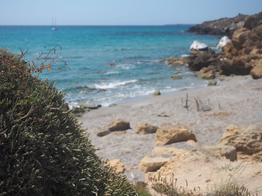 If you manage the steep walk from the parking spot past the archeological site (10-15 minutes) you are greeted by a beautiful and pretty quiet beach. The water was very clear during our stay and the beach itself even has some somewhat secluded spots to get some peace and quiet. The ground underwater is mostly sandy but at some points there are rocks that have collapsed into the water, so you can even find some fish.