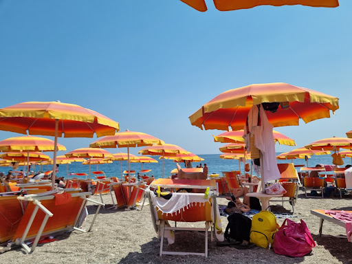 Very nice clean beach, very organised, with a cheerful cafe with music and pizzas, panini, drinks and ice creams. The pizza was not home made as seen in a picture from a review three years ago… But was cheap and was served to me after 3 pm which is way too late for lunch in Italy.