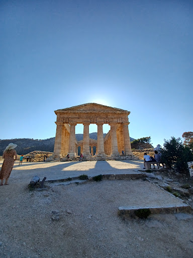 On a hill just outside the site of the ancient city of Segesta lies an unusually well preserved Doric temple. It is thought to have been built in the 420s BC by an Athenian architect, despite the city not having a large Greek population. The temple has six by fourteen columns on a base measuring 21 by 56 meters, on a platform three steps high. Several elements suggest that the temple was never finished. The columns have not been fluted as they normally would have been in a Doric temple and there are still bosses present in the blocks of the base (used for lifting the blocks into place but then normally removed). The temple also lacks a cella, any ornamentation, altar or deity dedication, and was never roofed over. The temple escaped destruction by the Carthaginians in the late...