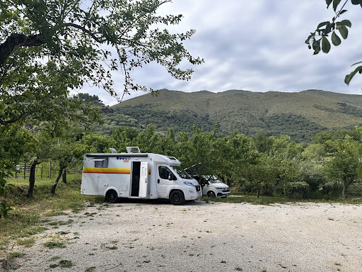Owners Francesca and Luca are so welcoming, friendly and helpful and have put a lot of thought into facilities - there are lots of places to sit and relax/eat, wifi, the bathroom is beautiful and shady spots to park. Work ongoing to create more camping spots, a kitchen and another bathroom. For this reason (and is working vineyard) lots of activity from around 7:30am to 5pm but very peaceful otherwise. Dog-friendly, they were happy to let ours roam freely. They have chickens and a lovely donkey.