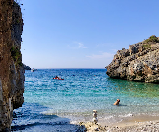 Would recommend parking near Spaggia Pozallo and walking to the beach from there. Roads to get there have a lot of potholes and are very rocky (we parked a bit before the parking lots). Was a 35 min hike according to Google maps. Some parts are quite steep and go through forest. Managed to do it in flip flops but would recommend running shoes with decent grip. Trail is marked by small red bows on tree branches and also by piles of rock forming arrows to show which direction to take.