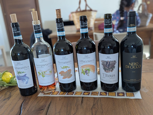 Read moreUnbelievably great experience. Could not have asked for a better day. We're staying in central Agrigento and saw the valley of the temples yesterday so didn't know if an additional day's stay was worth it. It absolutely is. Come here for a day! We WhatsApped the number and got an instant reply. Tour and explanations in English unlike a number of places we contacted. We got driven to the vineyard, pick up 11am by the lovely Rosa Maria, and got given a private tour by the owner's son, Salvatore. I'm writing this review merry and content from the beautiful and peaceful vineyard 6 hours after we got picked up. I'm 9 glasses in and might have to cancel our pre made dinner reservation from all the food! We are a family of 3x vegetarians and 1x vegan and yet they accommodated for our dietary requirements so well! They are so incredibly friendly and accommodating. The vineyard and views are beautiful, food is tasty and wine (rosé, merlot and Nero blend) are sensational. Without a doubt - book in! We have had a...