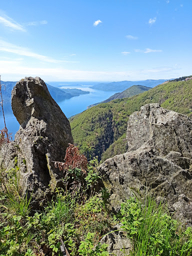Read moreDie Fahrt vom See unten bis zum Parkplatz, von dem es am einfachsten ist zum Gipfel zu laufen, dauerte 35 min. Ist sehr kurvig und mit zum Teil sehr engen StraĂen. Ausgangspunkt der kĂźrzesten Wanderung oder Spaziergang, wie auch immer man das nennen will, ist ein groĂer Parkplatz in Piancavallo bei einem Art Krankenhaus. Links vorbei am Krankenhaus ist der Start. Von das aus geht eine alte Militär StraĂe (nicht geplastert, nur befestigt) ohne Steigung, den Berg entlang bis zu einem Ausgangspunkt von dem man auf den Gipfel steigen kann. Dauer normal laufen ca. 45 min. Das alles ist mit Kindern die gut zu FuĂ sind, gut zu machen. Von da aus hat man zwei MĂśglichkeiten. Entweder man geht gerade aus durch alte, im 1. Weltkrieg, in den Berg gehauene Tunnel oder ihr setzt den Weg halb links nach oben fort und steigt auf Wurzeln und losen Steinen bis zu einem Aussichtspunkt. Das ist aber nicht der Gipfel. Das wiederum ist mit kleineren Kindern meiner Meinung nach nicht zu machen. Da stehen auch zwei breite Tafeln mit Erklärungen der umliegenden Gipfel. Incl. einer Bank zum Ausruhen. Wem das nicht reicht muss noch 20 Meter links einen schmalen Trampelpfad laufen und erreicht somit den offiziellen Gipfel. So, hoffe ich hab das einigermaĂen richtig erklärt. Der Aufstieg hat sich sowas von gelohnt. Blick Richtung SĂźden nach Stresa und Luganer See, wow. Setz noch ein paar Bilder...