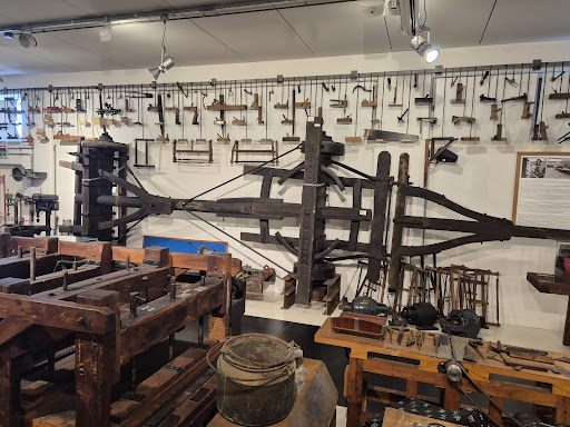 Amazing collection of old tools and machinery used for handling wood. Some pieces are as old as 1890s. It was so incredible to see how they were build and how the mechanics are still valid for today. Some old machinery use the same principles and assembly as we have on...
