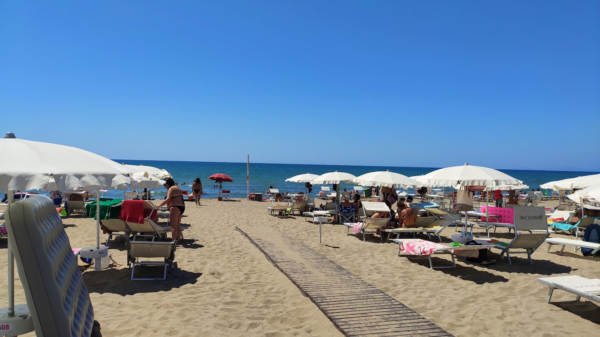 Read moreAbbiamo trascorso qui il Ferragosto, struttura notevole e ben curata, musica dal vivo per l'occasione davvero piacevole, personale disponibile ma insufficiente per la gestione dei tavoli. Prezzi oltre la media locale e forse è anche per questo che il posto è tranquillo e non super affollato. Peccato per la poca elasticità ricettiva, troppe regole limitano la vivibilità degli spazi e rendono il ristorante riservato soprattutto agli ospiti che vogliono consumare pasti con più portate e tempi d'attesa troppo lunghi, vietato mangiare la pizza al tavolo ma solo nel cartone accampati nei salottini x l'aperitivo. Non è previsto un servizo con spuntini e/o pranzo light in tempi smart per i più giovani e per chi non ama dilungarsi al ristorante, di contro, è proibito il pranzo al sacco... Nel ristorante cibo di qualità a prezzi medio alti. Spiaggia pulita con ombrelloni ben distanziati. Servizi igienici nei quali già dal pomeriggio nn siamo potuti entrare poiché maleodoranti e sporchi, non abbiamo visto un addetto al controllo e pulizia come in altri lidi. Altro aspetto negativo, la mancanza di posti auto nelle vicinanze, ma questo dipende sicuramente dall'amministrazione comunale che per compensare offre un servizio di navetta gratuito dal parcheggio, (nel quale le casse automatiche funzionano solo con moneta e qualche bancomat),...