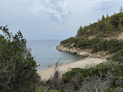 Read moreSpiaggia isolata, da raggiungere con una camminata di 15 minuti su strada battuta pianeggiante non asfaltata , ma adatta a chiunque....... Bisogna andare oltre la sbarra di ferro che dichiara la proprietà del villaggio. Diventa invece impegnativa (servono scarpe da ginnastica o trekking) l'ingresso in spiaggia. Durata non superiore ai 3 minuti. Una discesa attraverso arbusti, su rocce... rese anche sdrucciolevoli dalla presenza di terriccio e sassolini. Poco frequentata , abbiamo portato la nostra "pelosa" e nessuno si è lamentato, anche perchè, sia durante il bagno in mare, sia la permanenza in spiaggia, è sempre stata controllata. Non è presente alcun servizio!!! ZERO ASSOLUTO!! No acqua, no sdraio, no ombrelloni.... Ecc ecc. Acqua pulitissima, ma il fondale offre poco, perchè è un'enorme distesa di alghe. Personalmente, la consiglio moltissimo a chi ha voglia di un angolo di paradiso con poca gente e molta...