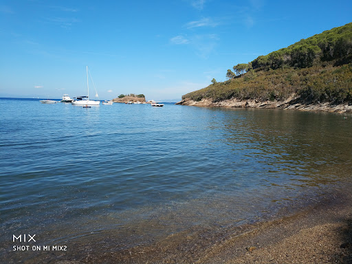 Noi veniamo spesso in questa spiaggia perché è molto fresca; si estende a ridosso di una pineta che permette di ripararsi nelle ore più calde del giorno. Il modo più comodo per arrivarci è parcheggiare (a pagamento (6€)) nella spiaggia attrezzata adiacente e poi percorrere a piedi circa 300m. La strada per arrivarci presenta una scalinata e una leggera salita. Sono presenti anche alcuni parcheggi gratuiti lungo la strada, ma c'è il rischio di trovarla rigata, visto che non è molto larga e 2 macchine passano giuste. Gli anni scorsi era presente anche un chioschetto sulla spiaggia che vendeva gelato e panini, affiliato al bar della spiaggia attrezzata, ma quest'anno lo abbiamo trovato chiuso, bisogna andare alla spiaggia adiacente per qualsiasi necessità. La spiaggia è di ghiaia, e presenta sulla destra degli scogli che si estendono fino ad una piccola isoletta, alla quale si può arrivare a piedi con la bassa marea. Purtroppo sono presenti anche molte barche ormeggiate che rovinano...