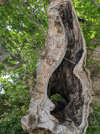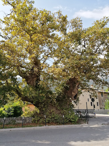 Albero del 1370 ( o almeno la data viene fatta risalire a quest'anno) attualmente sembra che sia il 2 platano più grande d'Italia è pieno di storia; Le più trite sono 2: La prima è quella di 100 Bersaglieri che nel 1937 durante le Grandi Manovre estive dell'Esercito Italiano si nascosero fra le sue fronde e nelle sue cavità una intera compagnia di 100 Bersaglieri. La seconda pare anche che nell'inverno del 1944 le truppe Tedesche decisero di sfoltirlo, per paura che i Partigiani si potessero nascondere dentro per tendergli...