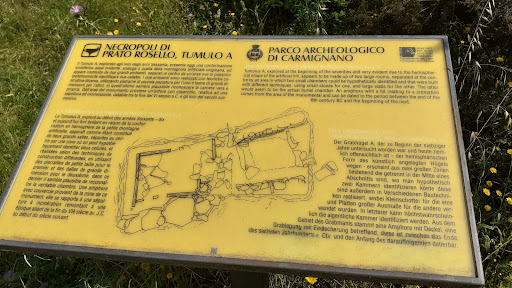 Read moreAvevo già visitato la necropoli anni fa. Da Artimino di prende la direzione della villa medicea, quindi si prosegue per qualche centinaio di metri sino ad un parcheggio sulla sinistra, tra gli olivi. L'ingresso sulla destra. Camminata facile sino alle prime tombe. Un pannello esplicativo mostra il persorso per raggiungere le cinque sepolture attualmente visitabili, tombe A, B, C, Z ed X. Attenzione a non perdersi... Tutte le tombe sono protette da una struttura in metallo con una copertura che le protegge dagli eventi atmosferici. La visita prende circa un paio d'ore: dipende dall'interesse e dalla velocità...