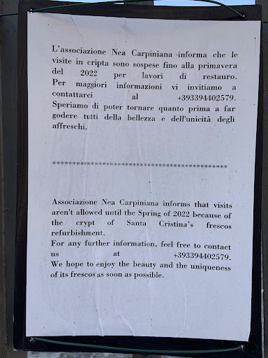 Read moreBy chance, we were able to visit the cript after seeing the olive oil press. We had an English speaking expert tell us all about the significance of this cript and it's frescoes....