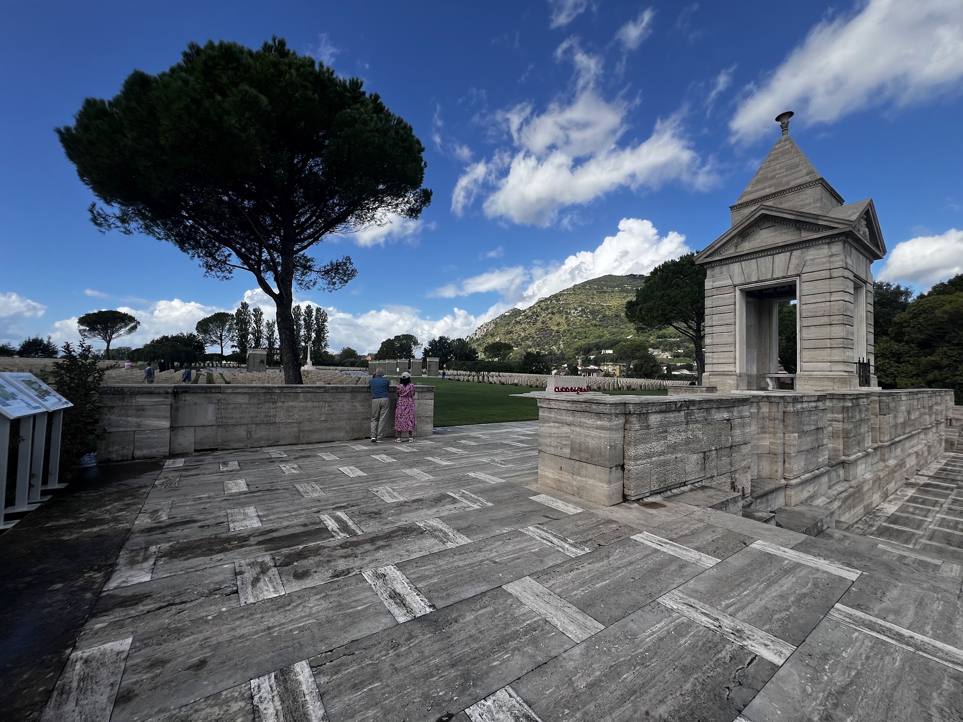Ā Ā Ā Read moreWe came to the cemetery on a family pilgrimage of 13 people to visit the grave of my husband's grandfather who was killed in the Battle of Montecassino in 1944. I was incredibly moved by my experience. It was so very meaningful to find his grave and to spend some quiet time there. I also spent a long time walking amongst the other graves and reading who the Allied servicemen were, their battalions and where and when they fell. I was particularly moved by the graves which were grouped together - for all of the members of Air Force flight crews who died together when their planes were shot down. There are engraved walls too with names of the servicemen who were lost with no body found to bury and some other striking memorial structures too. There is a little sanctuary space over on the left hand wall of the cemetery with a Visitors' book where you can mark your visit and leave a message. It was incredibly hot when we visited - there are some trees to rest in a bit of shade and the sanctuary gives a reflective, cooler roofed space. "Enjoy" would be the wrong word, but I had a very emotional and meaningful visit which meant a lot to me. It was quite something to be able to show my children their great grandfather's grave and explain to them the bravery and sacrifices made for us to give us our lives and freedom today. I highly...